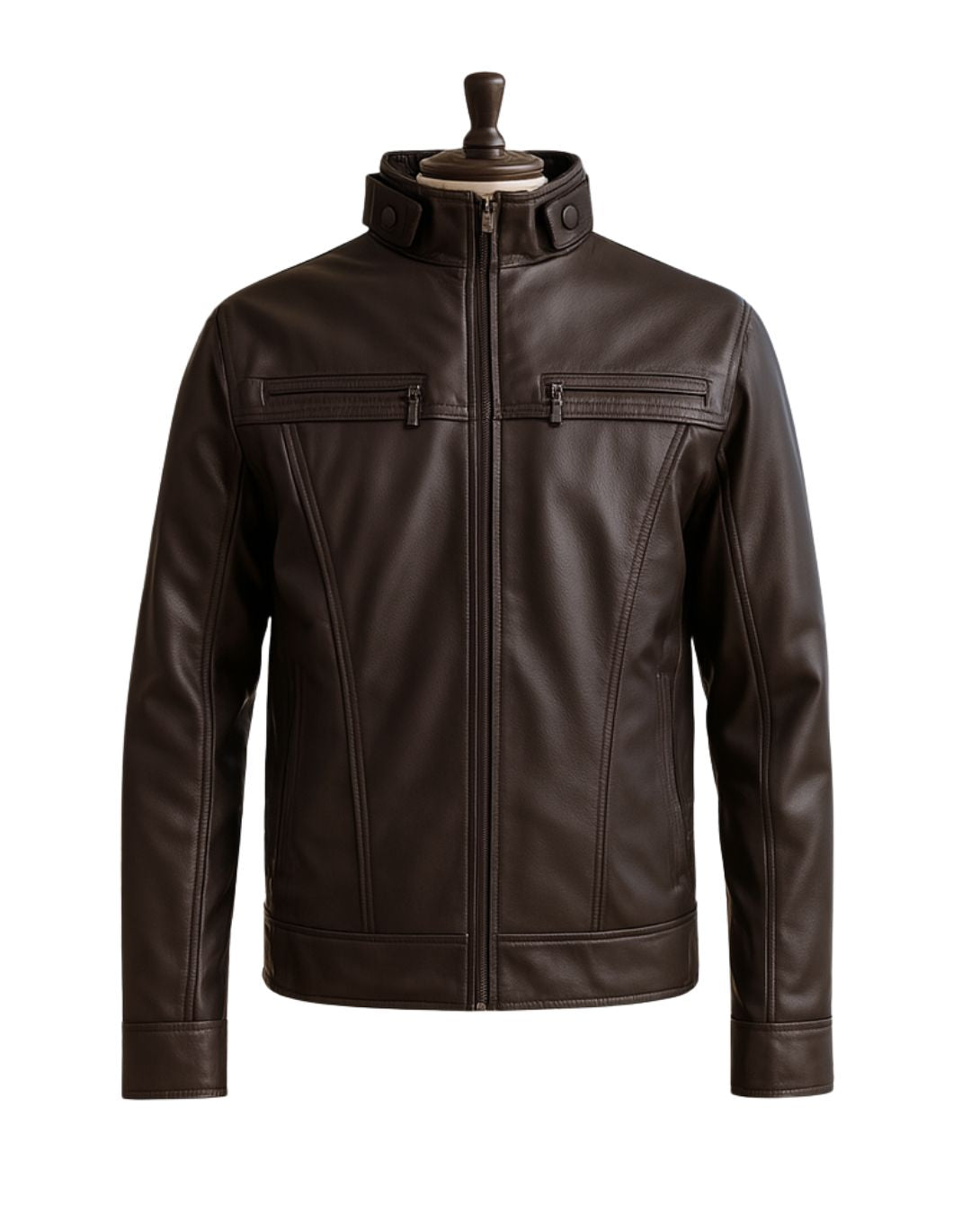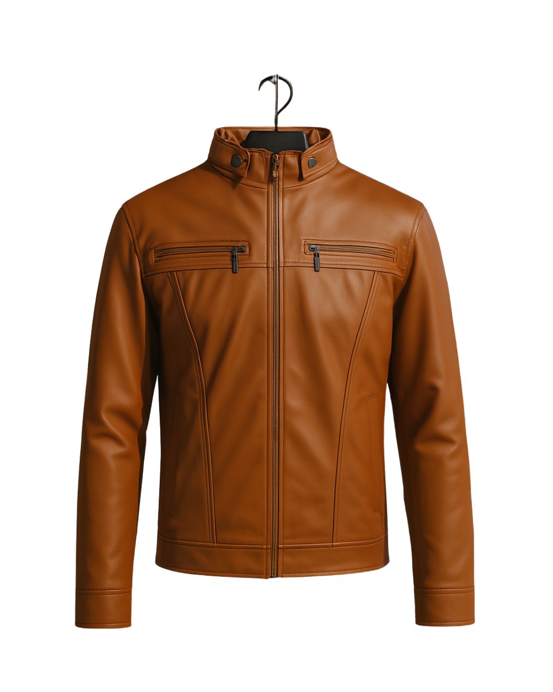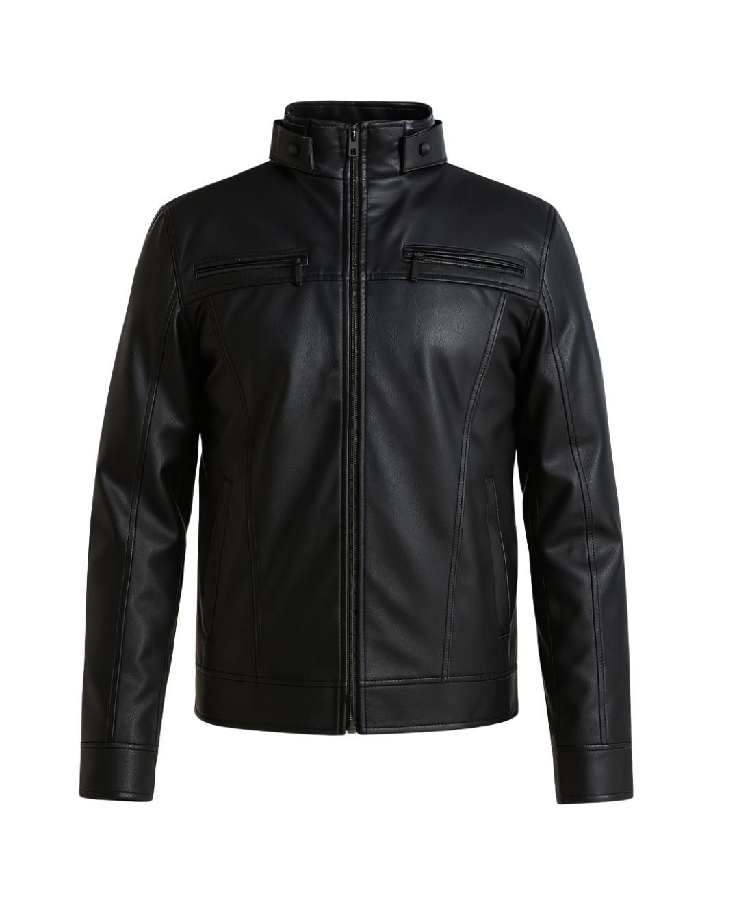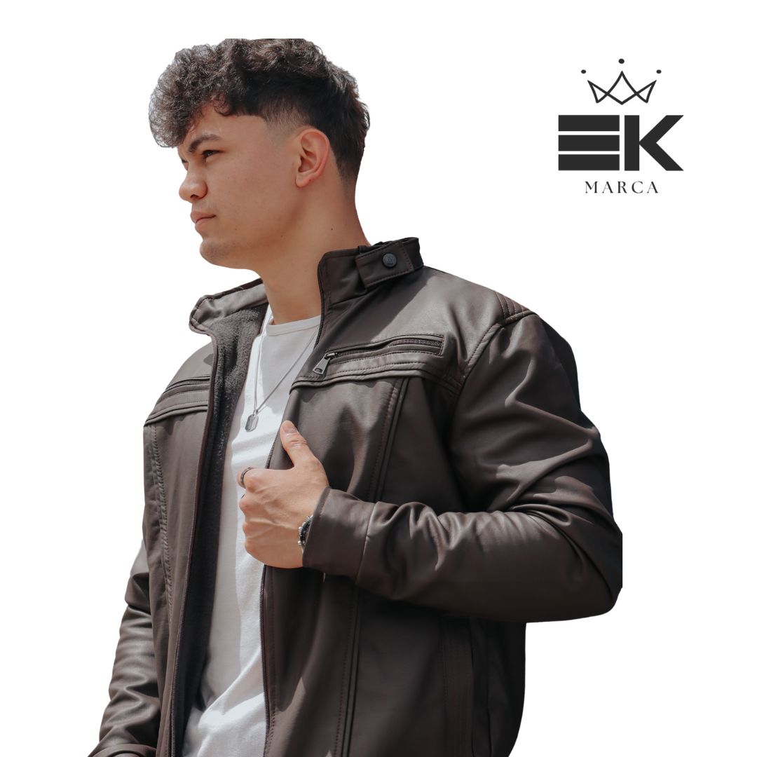 Chaqueta Slim Fit con diseño casual en Eco cuero Premium con forro interno en flis térmico, manga larga con puños en resorte, cuello redondo, bolsillos inclinados delanteros y terminaciones finamente reforzadas.
