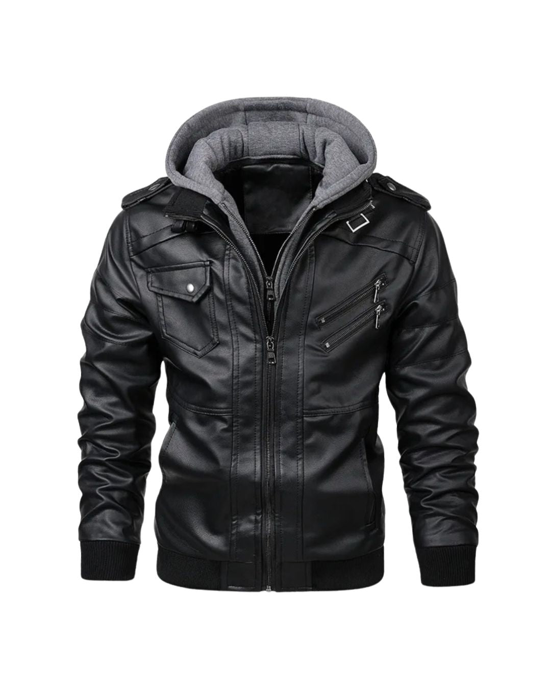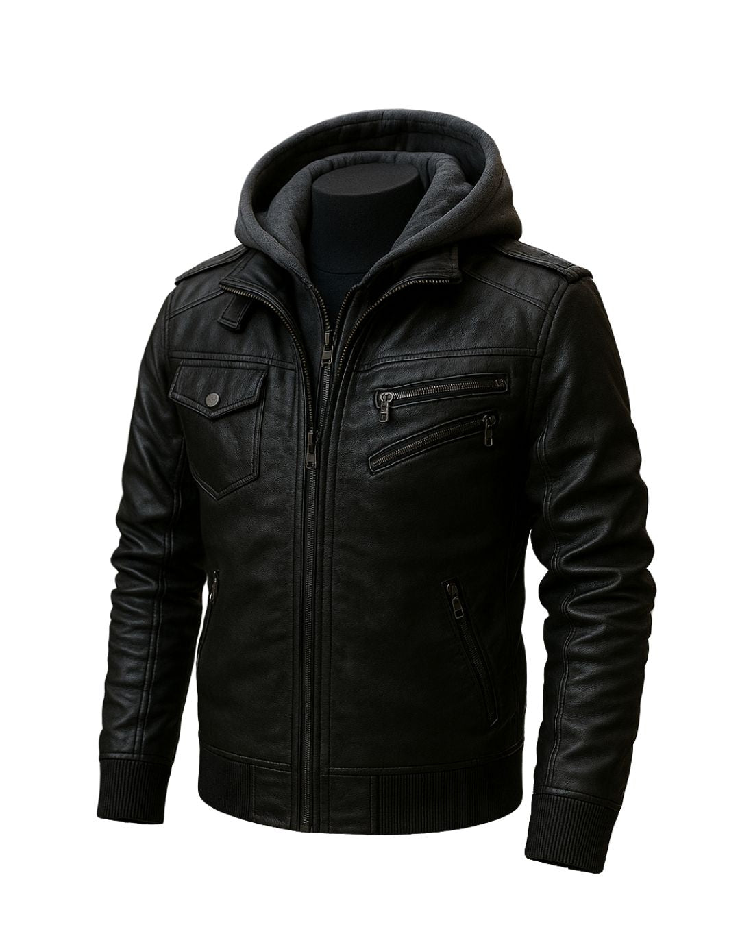 Chaqueta Slim Fit con diseño casual en Eco cuero Premium con forro interno en flis térmico, manga larga con puños en resorte, cuello redondo, bolsillos inclinados delanteros y terminaciones finamente reforzadas.