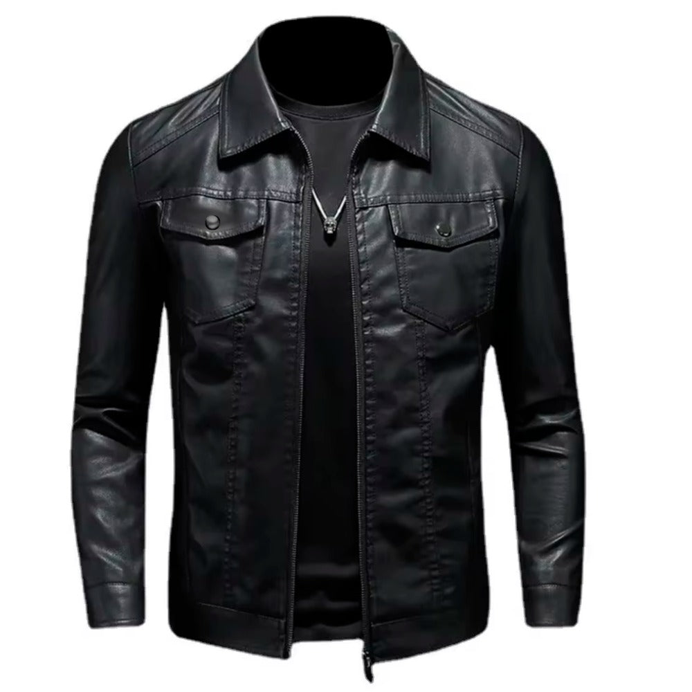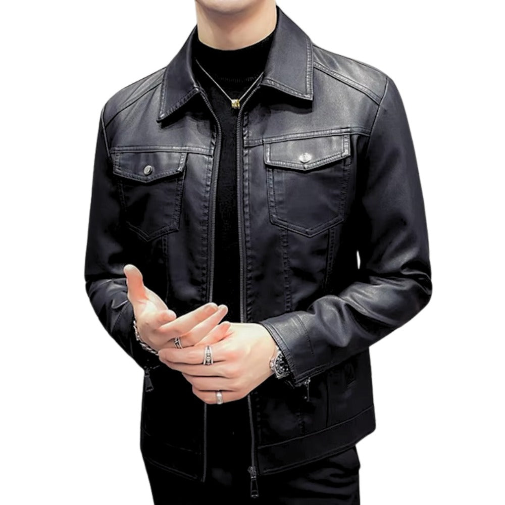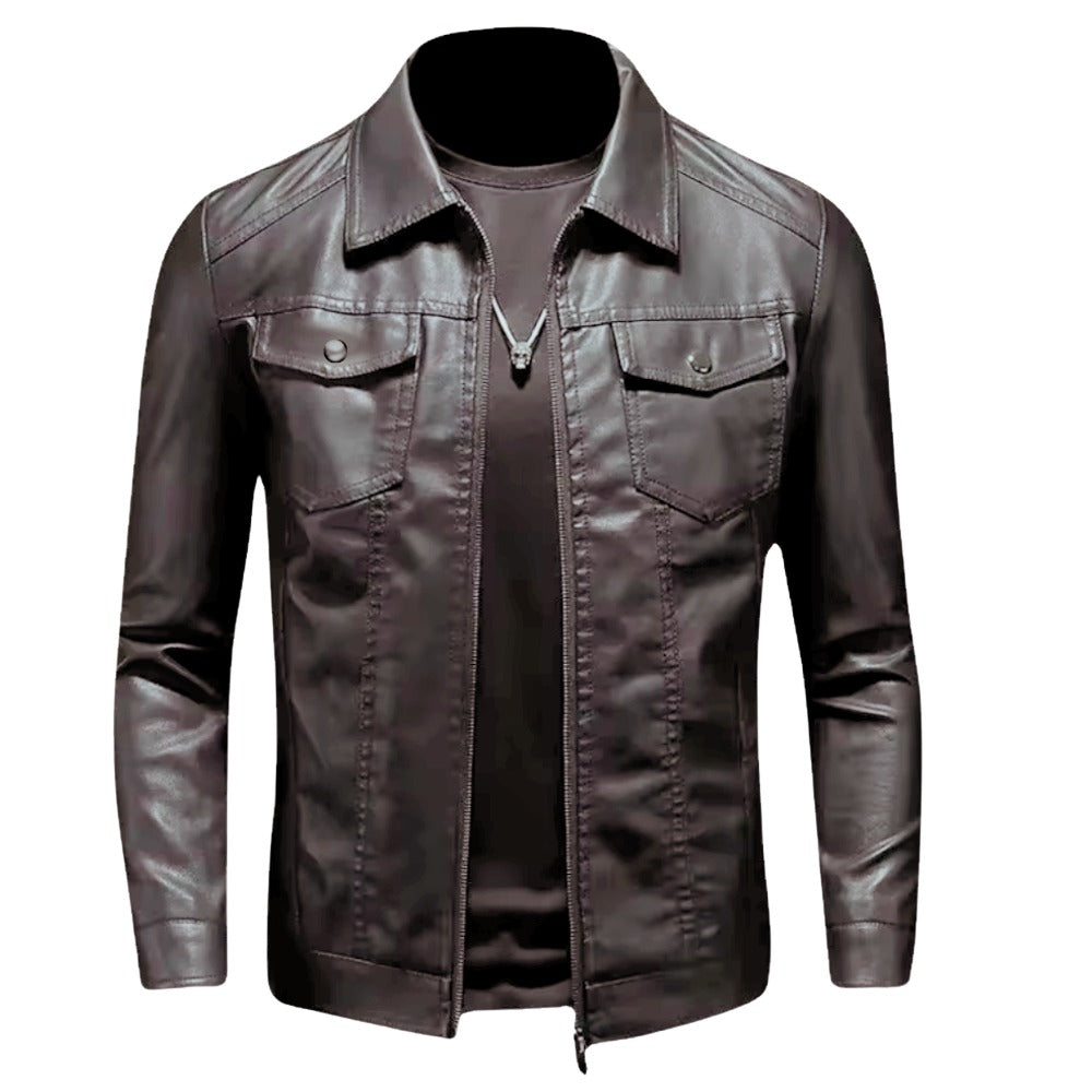 Chaqueta Slim Fit con diseño casual en Eco cuero Premium con forro interno en flis térmico, manga larga con puños en resorte, cuello redondo, bolsillos inclinados delanteros y terminaciones finamente reforzadas.